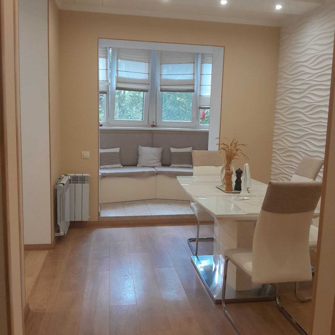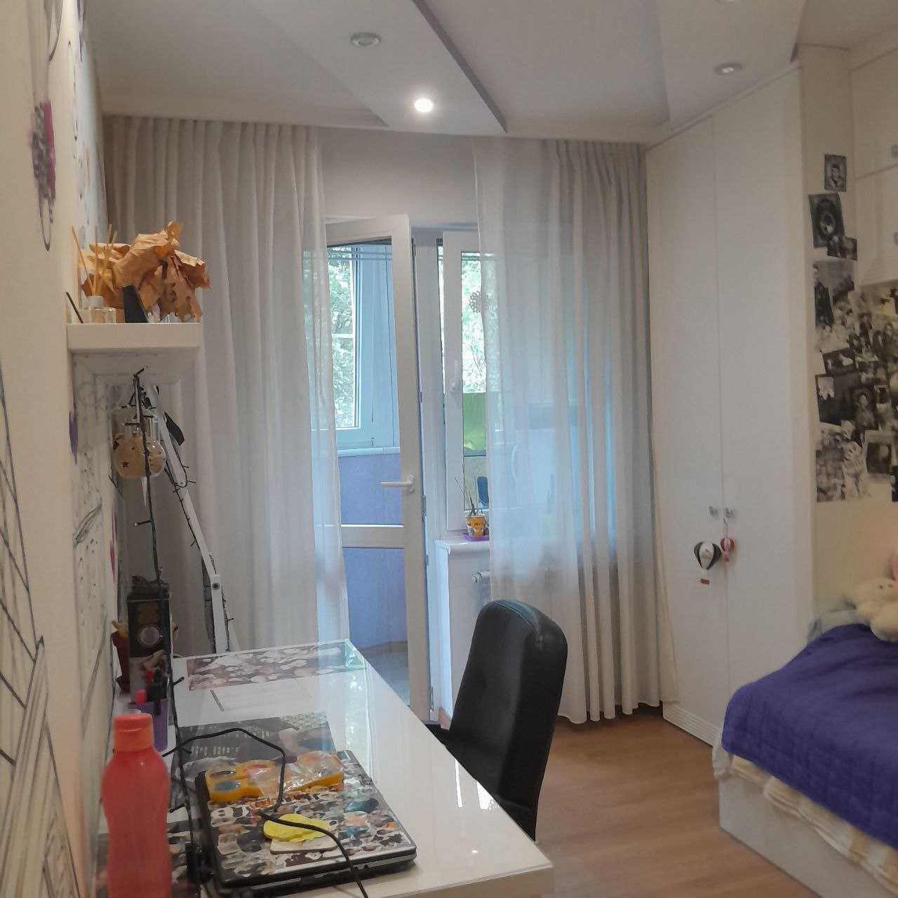 Пропонується трикімнатна квартира з євроремонтом на вулиці Генерала Бочарова в Одесі. Житло має газове опалення та простору кухню-столову площею 20 м². Санвузол об'єднаний, виконаний у сучасному стилі. Чотири лоджії обладнані склом та утепленням. У квартирі залишаються вся нова меблі та техніка. Поблизу розташовані ринок "Північний", школи, дитячий садок та магазини. У пішій доступності – Кримський бульвар.