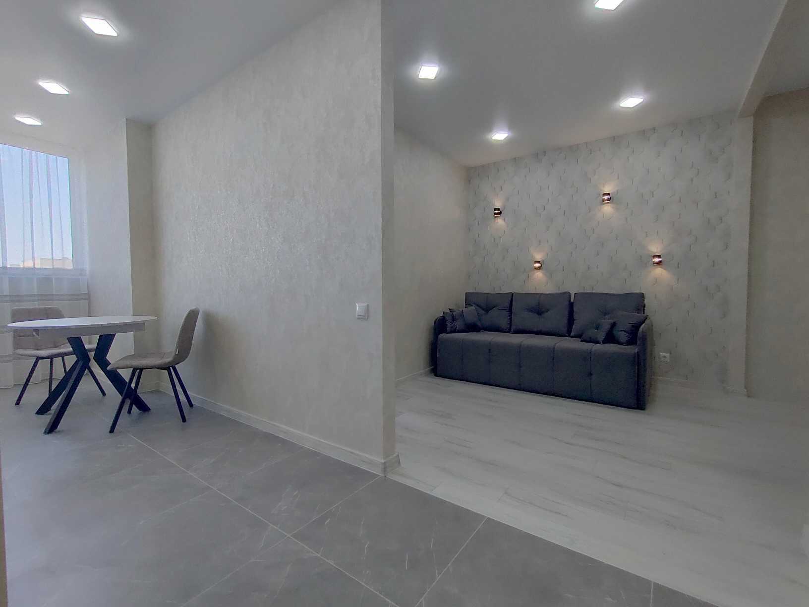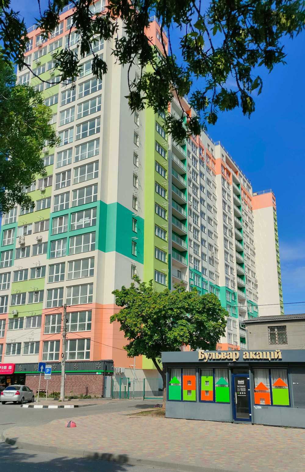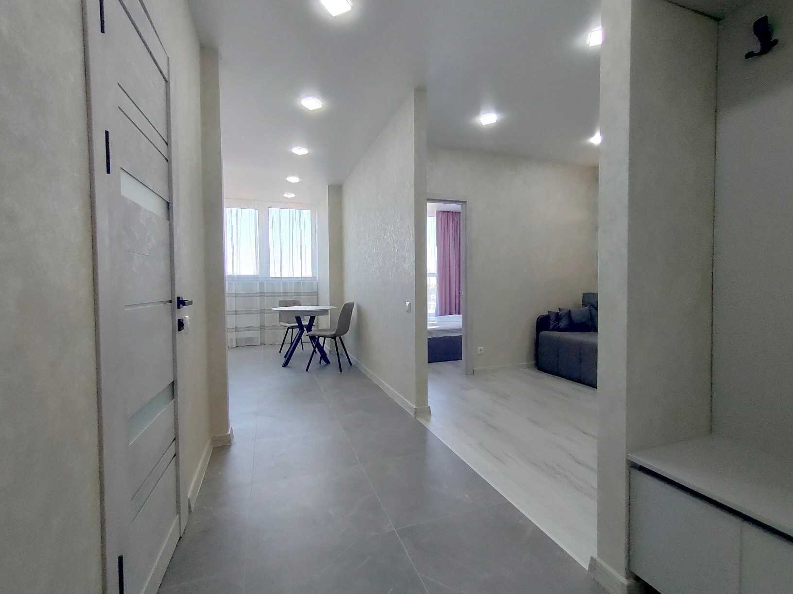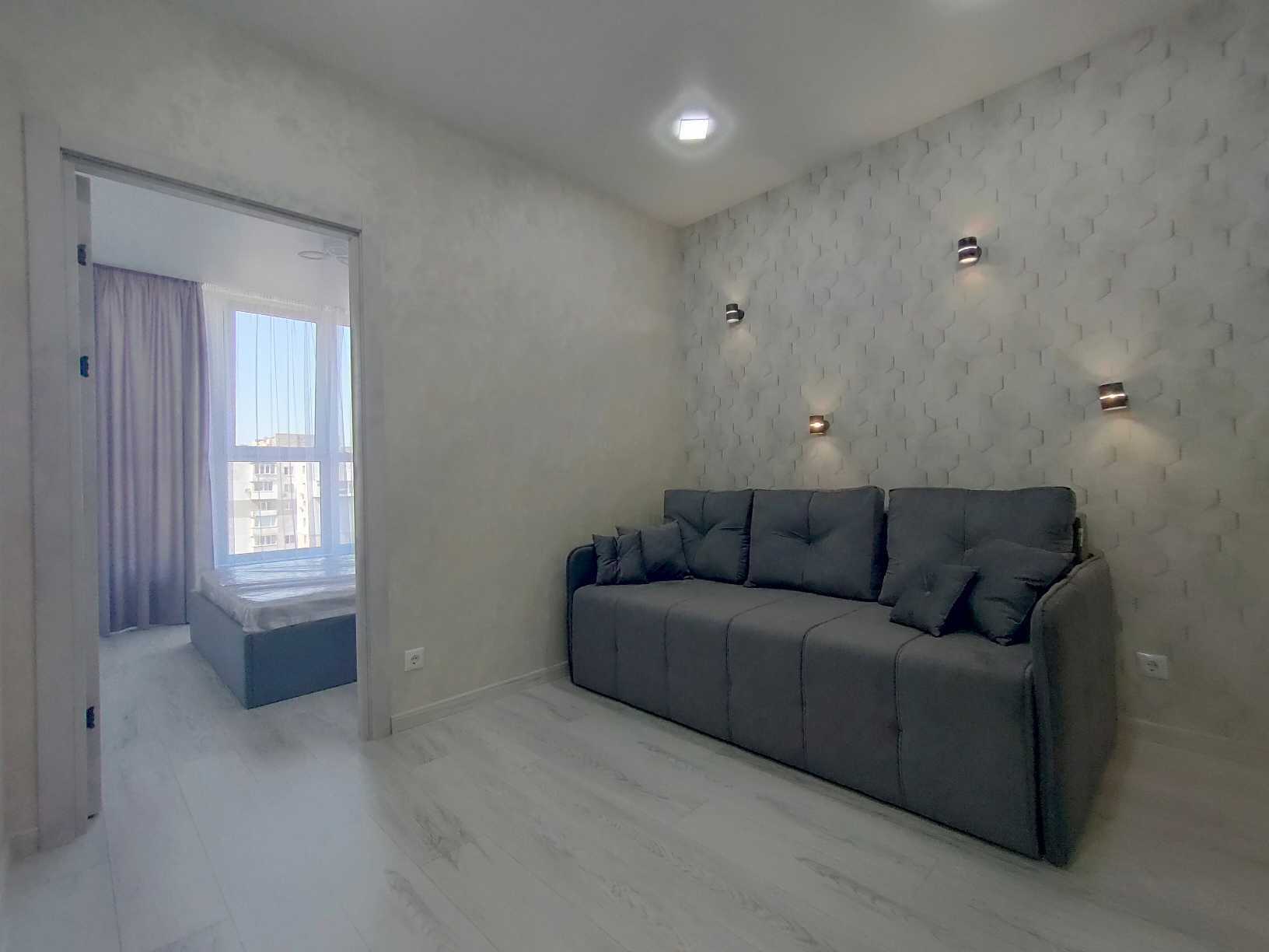 Квартира у ЖК Бульвар Акаций, розташована на Бугаевській, кут з Средньою, була здана в 2021 році. В квартирі виконано сучасний ремонт, стіни оформлені шпалерами, підлога в покритті з ламинату та плитки, натяжна стеля. Оснащена вбудованою кухнею з побутовою технікою та місцем для обіднього столу. Гостиною передбачено зону для відпочинку з диваном, є місце для шафи-купе та телевізора. Спальня облаштована двоспальним ліжком. Санвузол суміщений, з ванною та підготовкою під пральну машину. Доступні інтернет і кондиціонер. Закрита територія з охороною, підземний паркінг. Поблизу розташовані супермаркети, школа, дитячий садок та парк.