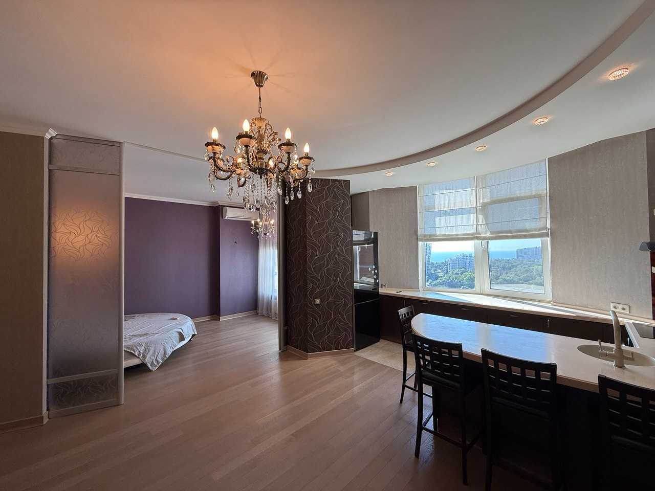 Пропонується квартира на Французькому бульварі, 17 поверх. Загальна площа становить 57,5 м2. Квартира має добротний ремонт та складається з окремої спальні з гардеробною, просторої кухні-вітальні, коридору та санвузла з технічним приміщенням. Вікна виходять на Чорне море, забезпечуючи прекрасний вид. У квартирі залишаються меблі, що відображені на фото.