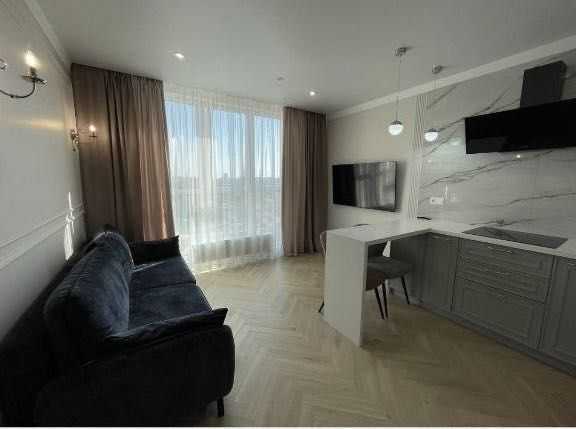Пропонується однокімнатна квартира в ЖК "Літературний", розташованому поряд з Парком Юність та морем. Квартира знаходиться на 13-му поверсі 21-поверхового будинку, має загальну площу 40,9 кв. м., а кухня-гістина складає 15,8 кв. м. Зроблений дизайнерський ремонт з якісних матеріалів, квартира повністю нова. Оснащена технікою відомих брендів, є система "розумний дім". На території - закрита охорона, консьєрж, швидкісні ліфти та безкоштовний паркінг. Зручна локація для сучасного життя.