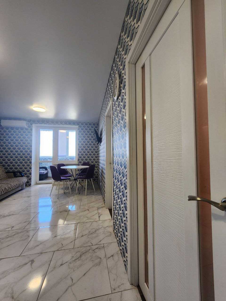 Пропонується 2-кімнатна квартира з боковим видом на море на вул. Сахарова. Загальна площа – 48 м², розташована на 11 поверсі новобудови. У квартирі виконано якісний ремонт, сучасна мебліровка, нова техніка: холодильник, пральна машинка, кондиціонер, телевізор, плита. Простора спальня з двоспальним ліжком та розкладний диван, дитячий диван і шафа-купе. Балкон облаштований під кабінет, є зручна кладовка для зберігання речей. Квартира світла і затишна.