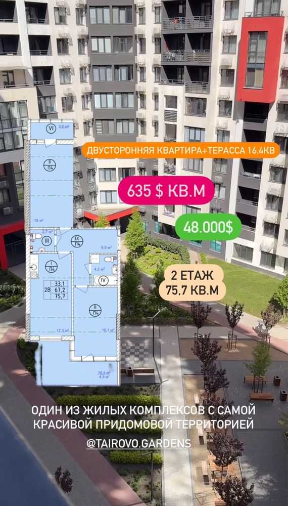 Пропонується квартира з комфортним плануванням і терасою в новому житловому комплексі на Таїрова. Житло розташовано на зручному поверсі. В околицях розвинена інфраструктура: поряд супермаркет, метро, оптовий ринок, школи, дитячі садки та зупинки громадського транспорту. На першому поверсі будинку представлена комерційна інфраструктура, включаючи аптеки, салони краси, продуктові магазини та кав'ярні. Будинок вже збудований.