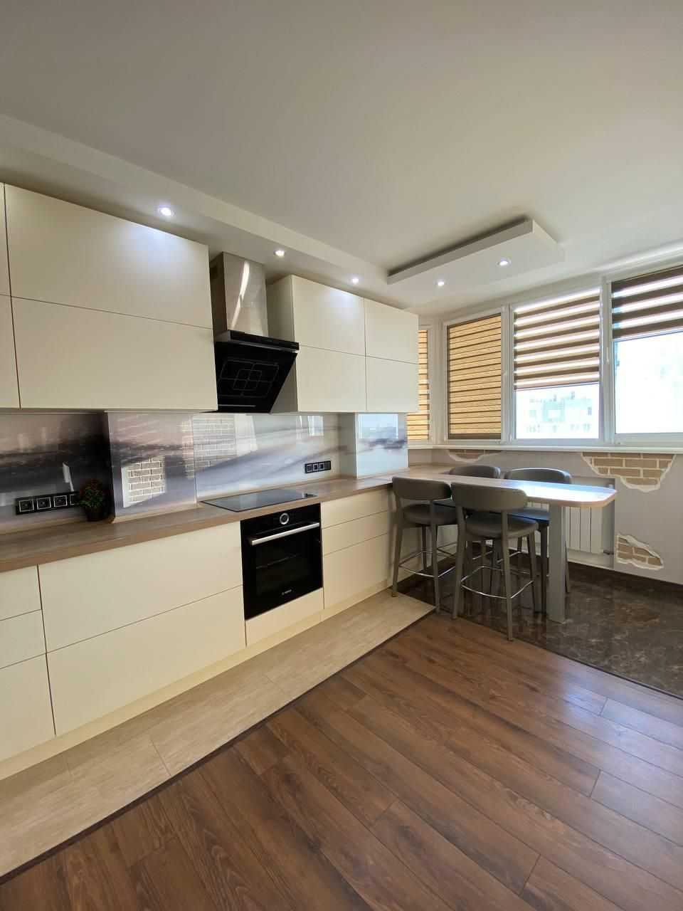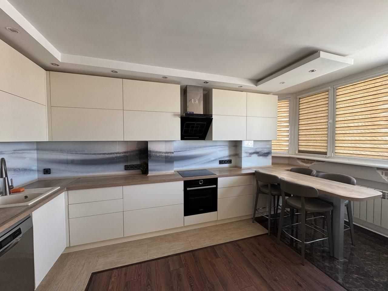 Пропонується стильна 2-комнатна квартира у сучасному житловому будинку на вулиці Бочарова. Квартира включає в себе простору вітальню, спальню та кімнату, що може використовуватися як гардеробна. Перевагою є великий суміжний санвузол з ванною та душовою кабіною. Кухня площею 14 м² обладнана необхідною технікою, включаючи посудомийну машину. Ремонт виконаний в сучасному стилі. Будинок має генератор та консьєржа в парадному. Розташування забезпечує доступ до розвинутої інфраструктури, супермаркетів, шкіл та зупинок громадського транспорту.