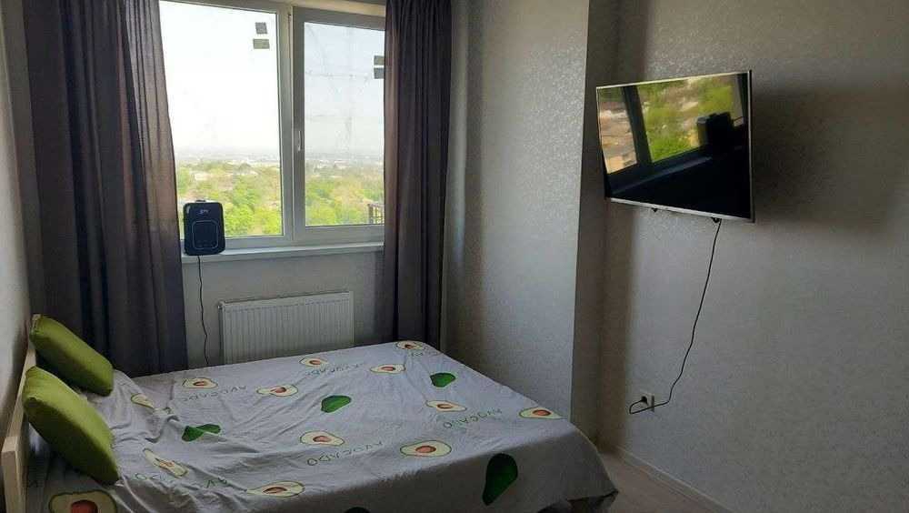 Однокомнатна квартира у житловому комплексі "Одесські Традиції" з ухоженою прибудинковою територією та підземним паркінгом, до якого можна спуститися на ліфті. Квартира світла, обставлена меблями та технікою, потребує завершення фартуха на кухні. Загальна площа разом з балконом становить 37 кв.м., балкон можливе застеклення панорамним остекленням. У квартирі встановлено реле напруги для стабільності, а також придбано генератор для дому, який скоро підключать. З вікон відкривається красивий вид на залив моря.
