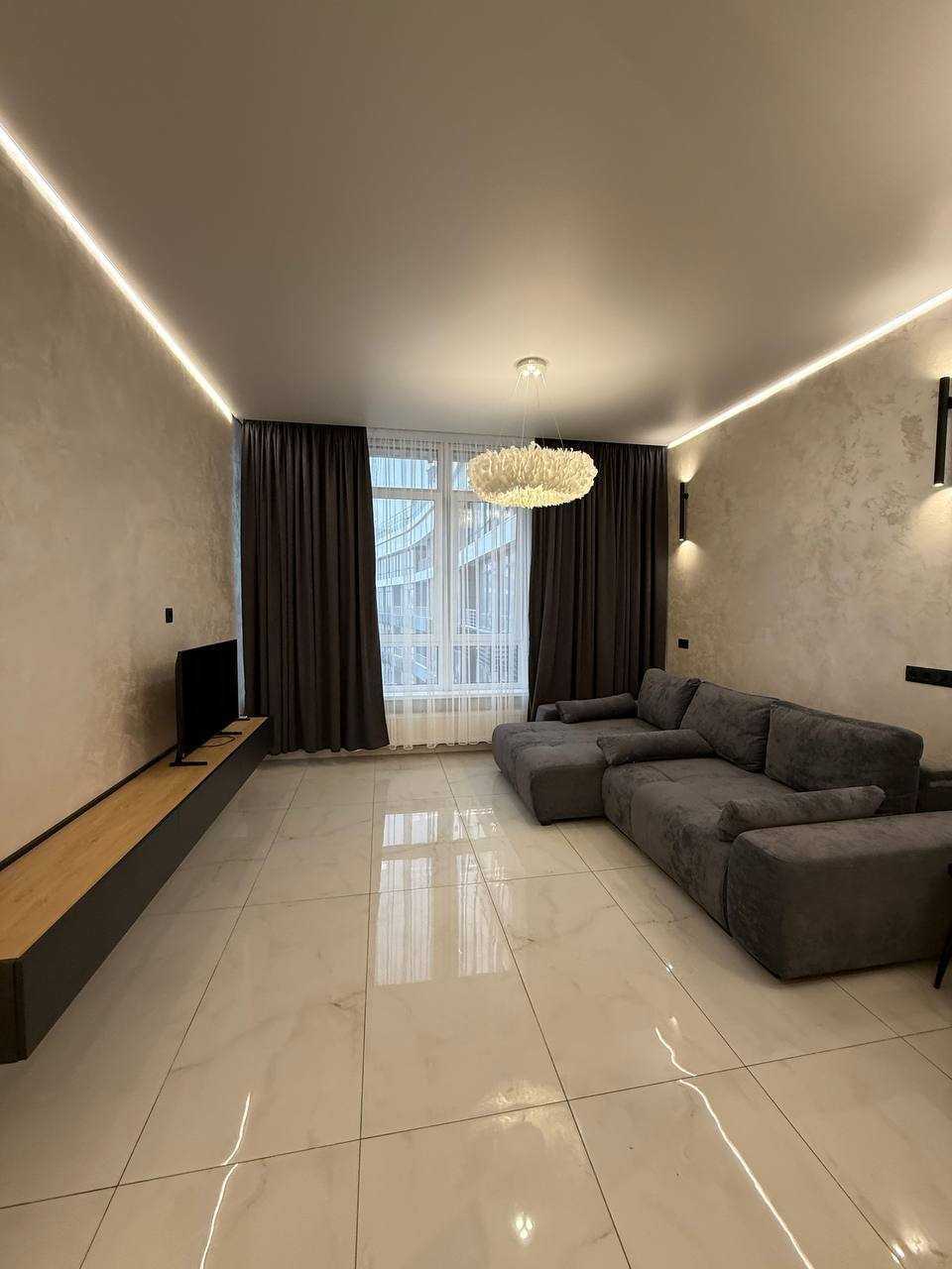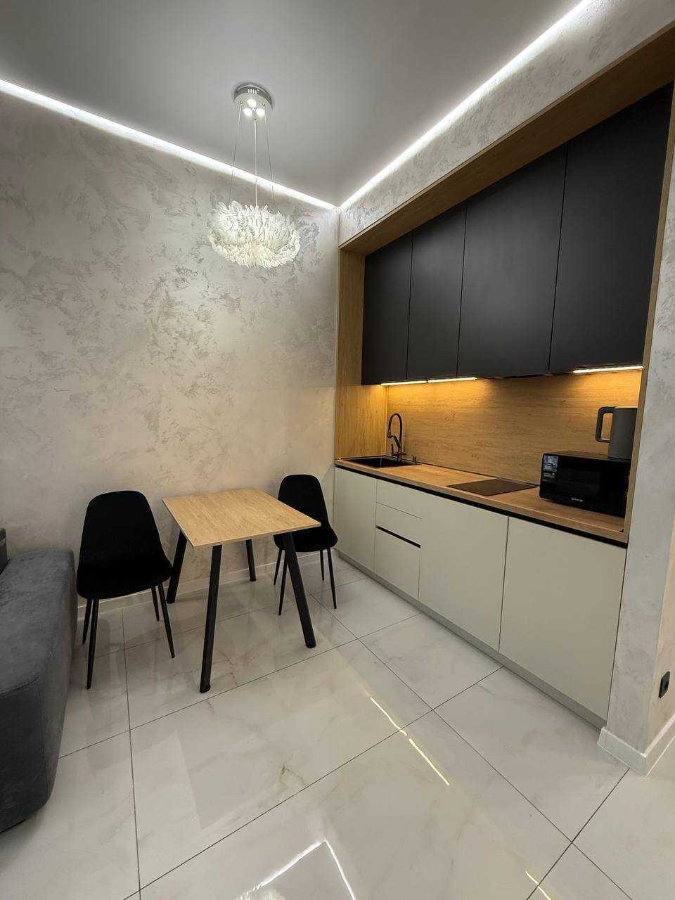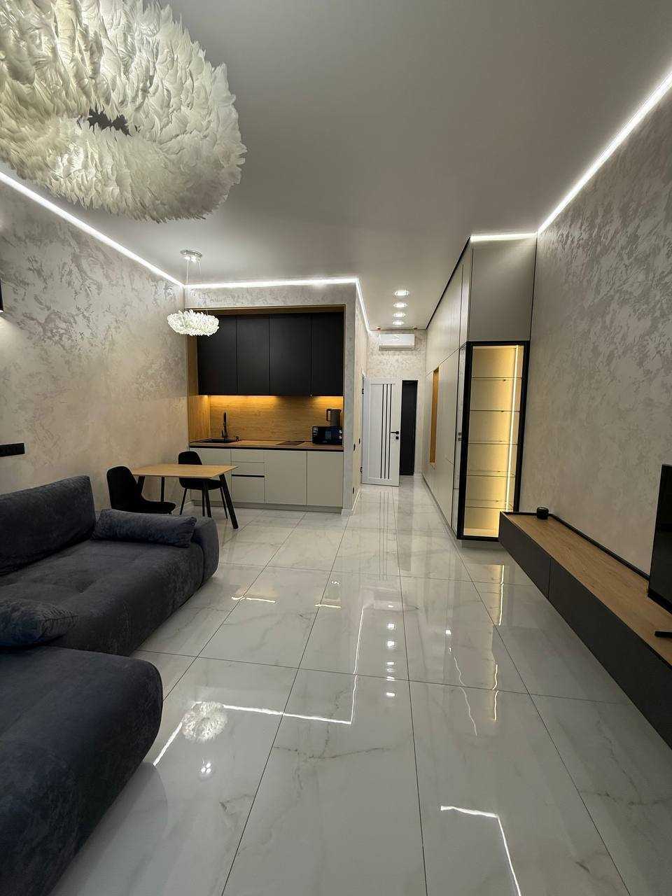 Стильна квартира-студія в житловому комплексі «Атмосфера», розташована на 25-му поверсі. Загальна площа 34 м² з сучасним євроремонтом та якісною технікою. Окремою перевагою є панорамний вид на море. Комплекс має розвинену інфраструктуру, поруч знаходяться пляжі, ресторани та магазини. Також доступні терраси на даху з краєвидами на морське узбережжя.