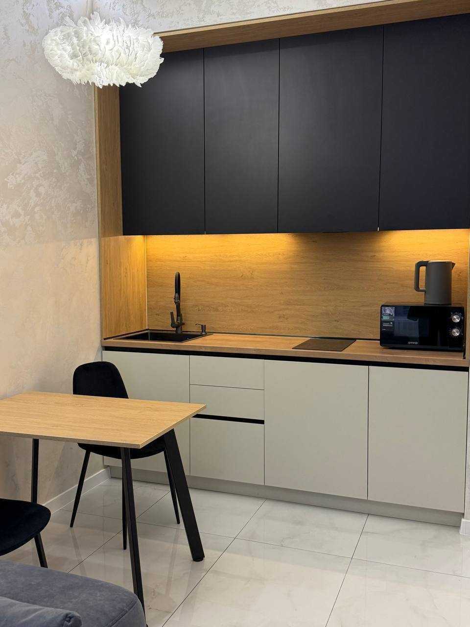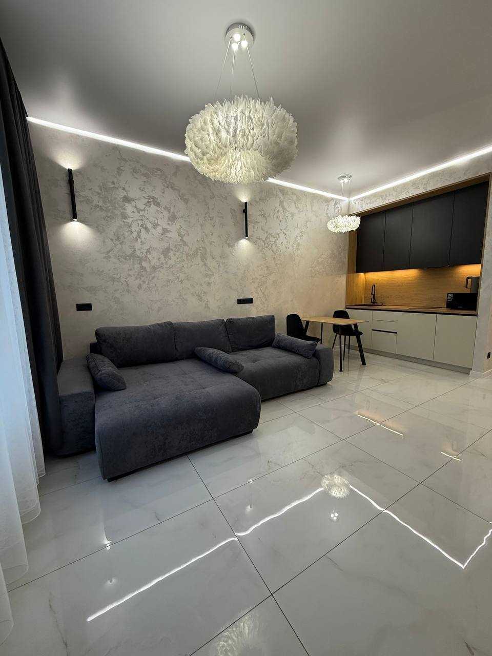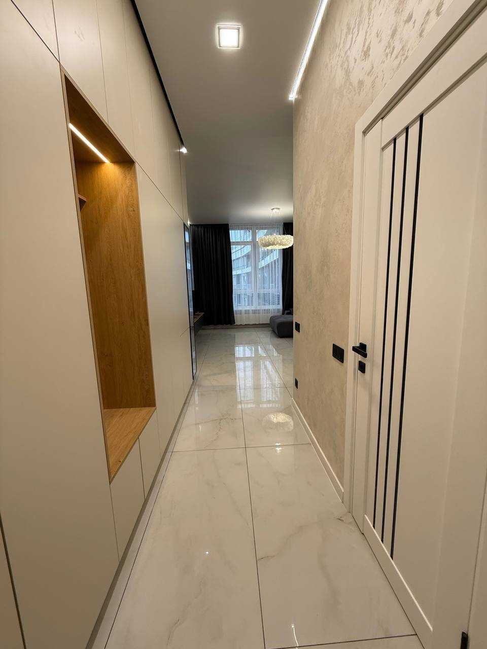Стильна квартира-студія в житловому комплексі «Атмосфера», розташована на 25-му поверсі. Загальна площа 34 м² з сучасним євроремонтом та якісною технікою. Окремою перевагою є панорамний вид на море. Комплекс має розвинену інфраструктуру, поруч знаходяться пляжі, ресторани та магазини. Також доступні терраси на даху з краєвидами на морське узбережжя.