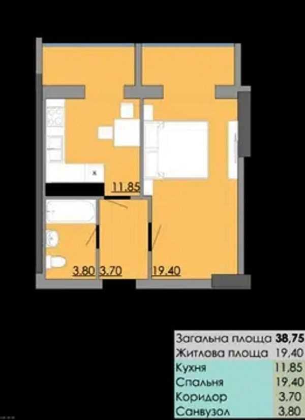 Однокімнатна квартира, розташована на 5 поверсі 16-поверхового нового житлового комплексу "Бульвар Акацій". Загальна площа - 39 м², окрема кімната площею 19 м², кухня - 12 м², затишна лоджія. Стан квартири - під оздоблення. В окрузі розвинена інфраструктура: школи, магазини, кафе, поряд великий парк, що підходить для прогулянок. Відстань до історичного центру міста - в пішій доступності.