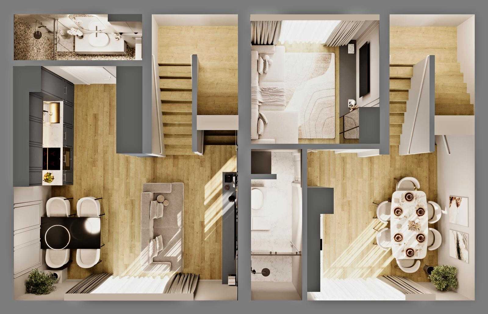 Пропонується сучасний таунхаус площею 140 м² в Аркадії. Комплекс складається з трьох поверхів, де на першому розташований гараж або кухня-студія, а на другому і третьому – житлові кімнати з балконами. Четвертий поверх оснащений просторою террасою з панорамним видом. Стан квартири - під чистову обробку. Закрита територія забезпечує безпеку. Відстань до Аркадійської алеї та ТЦ "Гагарин Плаза" складає всього 650 і 500 метрів відповідно.