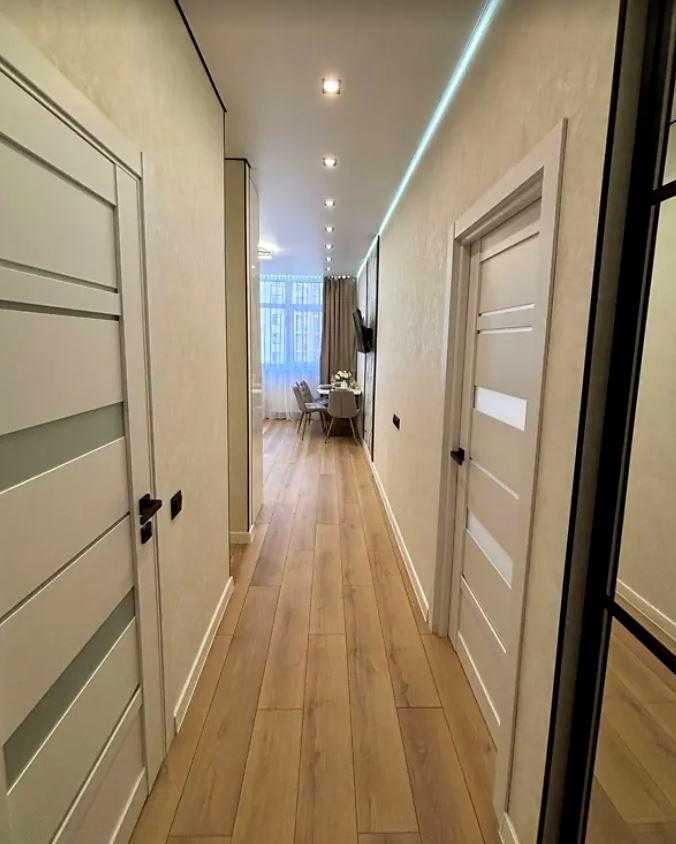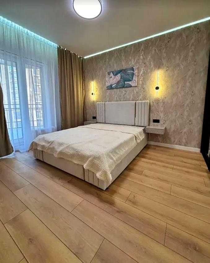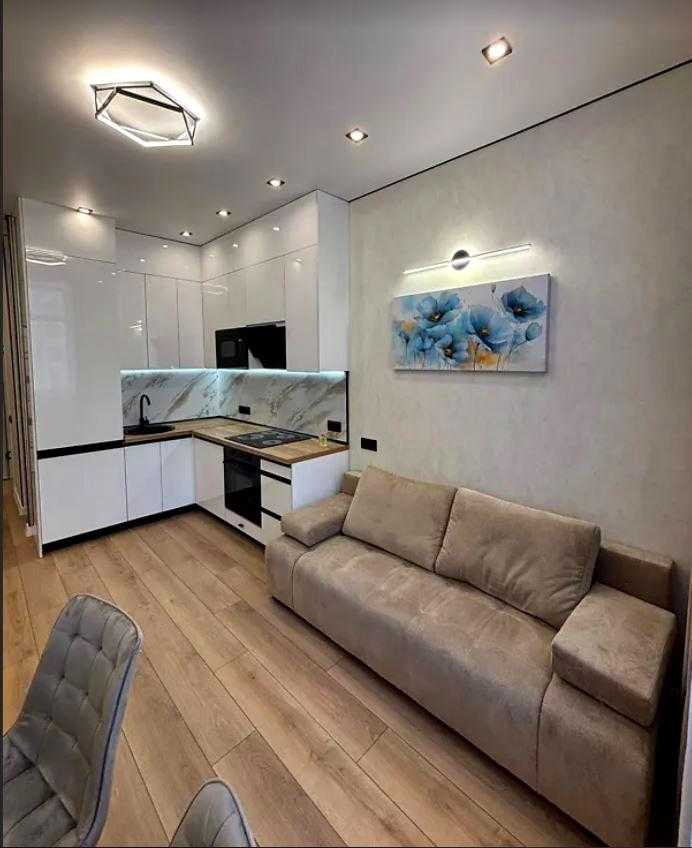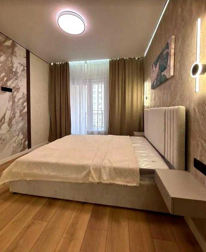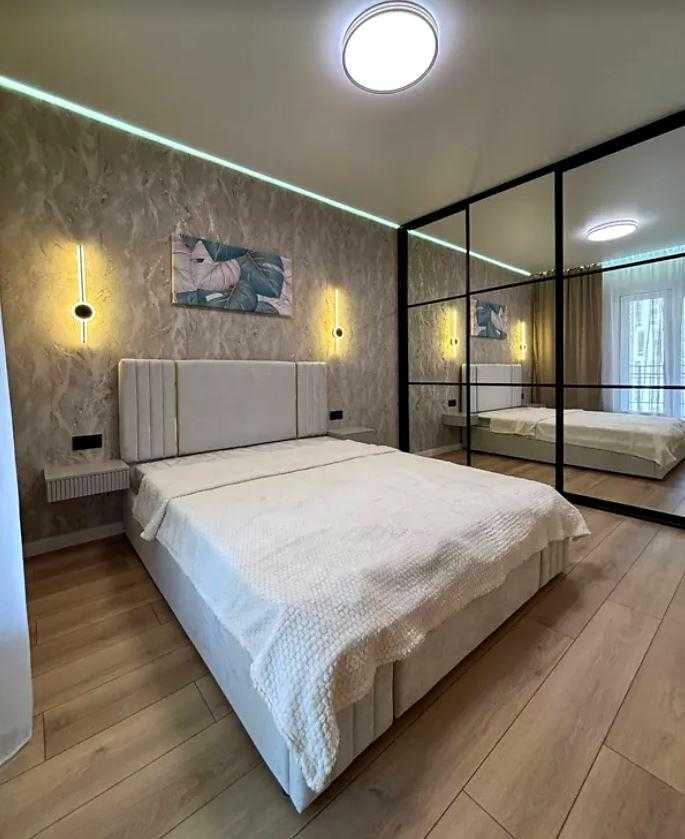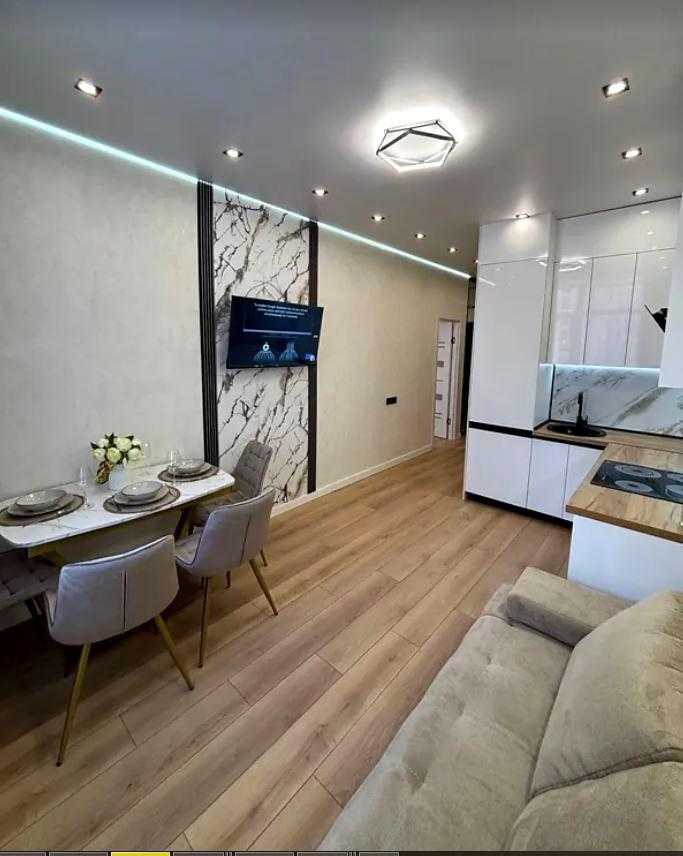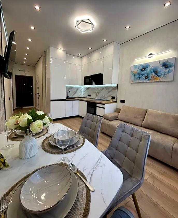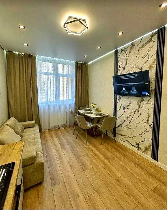 Квартира розташована в сучасному житловому комплексі KADORR City на вулиці Краснова. Загальна площа квартири складає 41 кв.м., до складу входять простора спальня площею 14 кв.м. та кухня 15 кв.м. Інтер'єр виконаний у стилі євроремонт. Існує вихід на велику террасу 8 кв.м., з якої відкривається вид на Іподром і внутрішній двір. Житловий комплекс забезпечений автономними комунікаціями, включаючи воду, опалення та інтернет. Закрита територія комплексу надає додаткову безпеку.