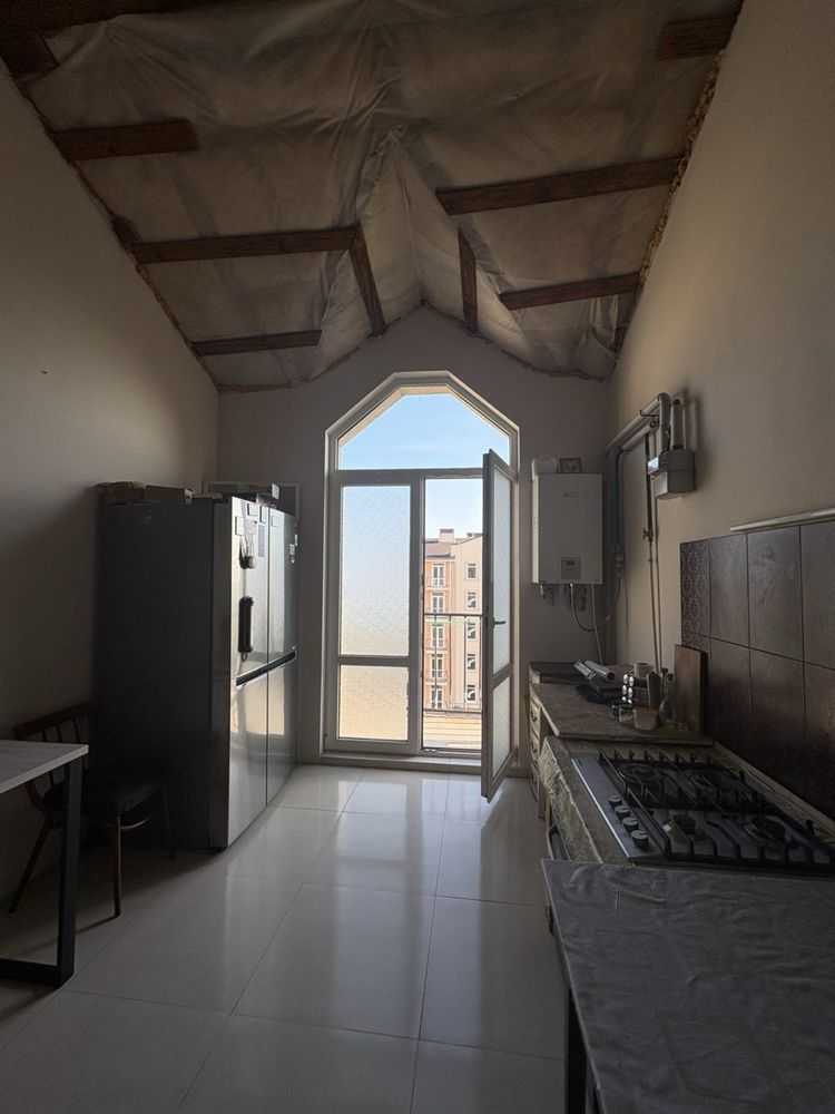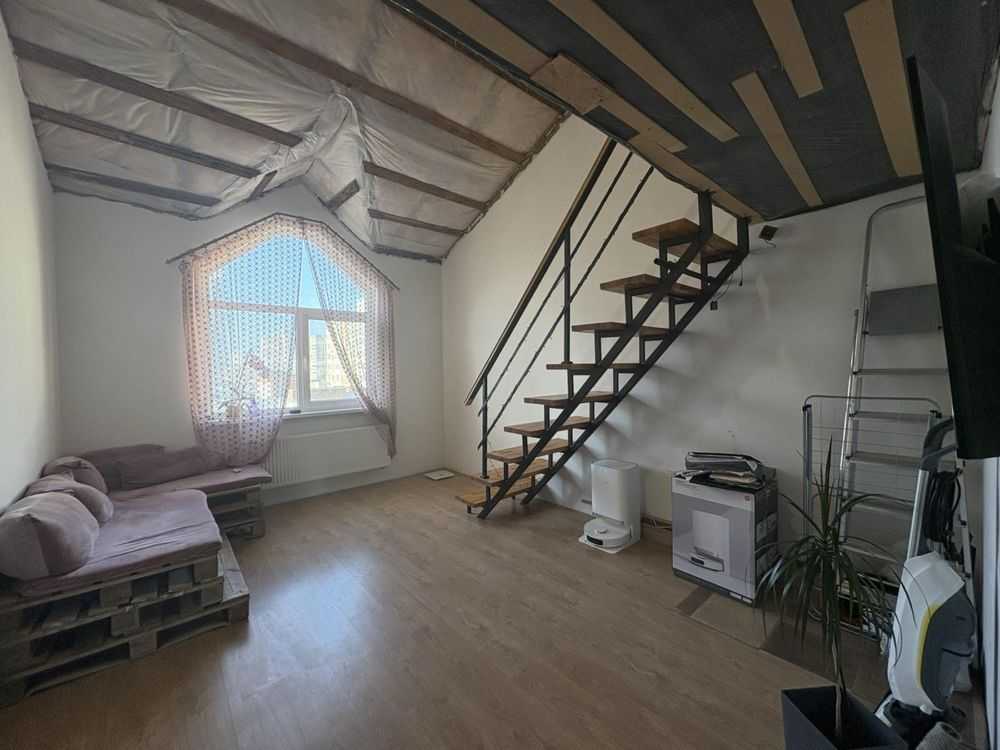 Пропонується двокімнатна квартира в ЖК Якоря. Оснащена капітальним ремонтом, що не завершений, що надає можливість для індивідуального дизайну. Завдяки висоті стель, квартира має два рівні, на яких зручні планування. Комплекс класу еліт, з огорожею та розвинутою інфраструктурою: стадіоном, гостевою парковкою, зоною для відпочинку з великою бесідкою та фонтанами. Розташована на останньому поверсі.