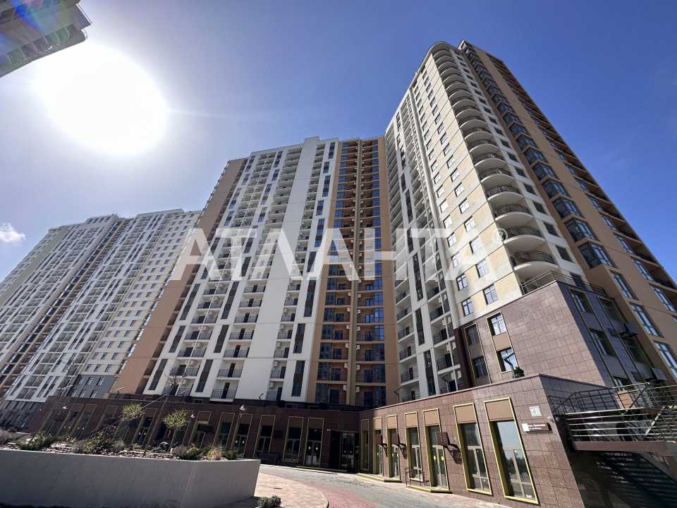 Двокімнатна квартира з просторим балконом в Одесі, на високому поверсі. З вікон відкривається панорамний вид на місто. Одна з кімнат має вихід на балкон, є окрема кухня гарної площі. Можливе перепланування, оскільки стіни не несуть. Передпокій має місце для шафи-купе. Сучасний будинок з автономним опаленням, підземним паркінгом та генератором. Розташування у новому мікрорайоні з розвиненою інфраструктурою.