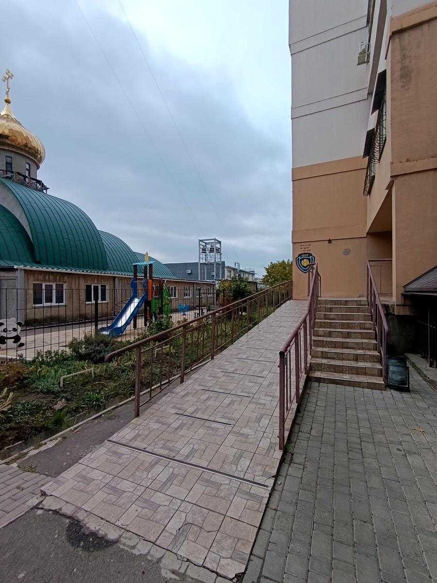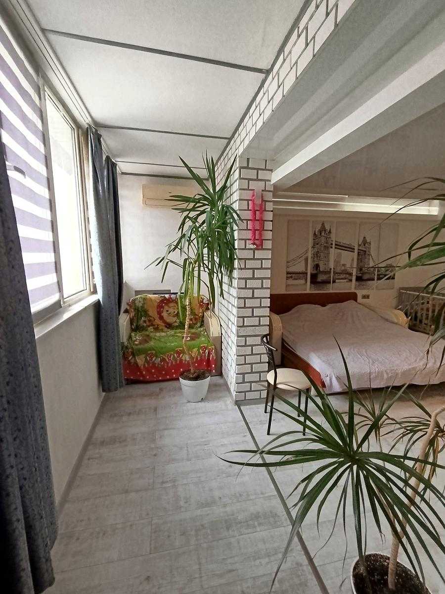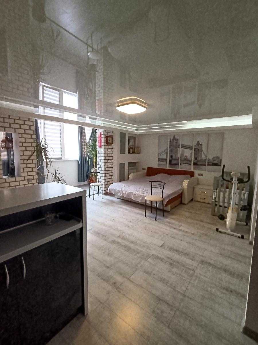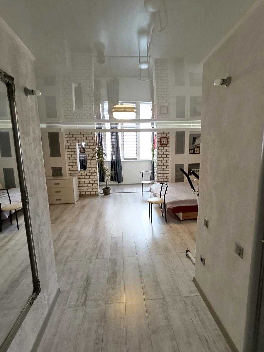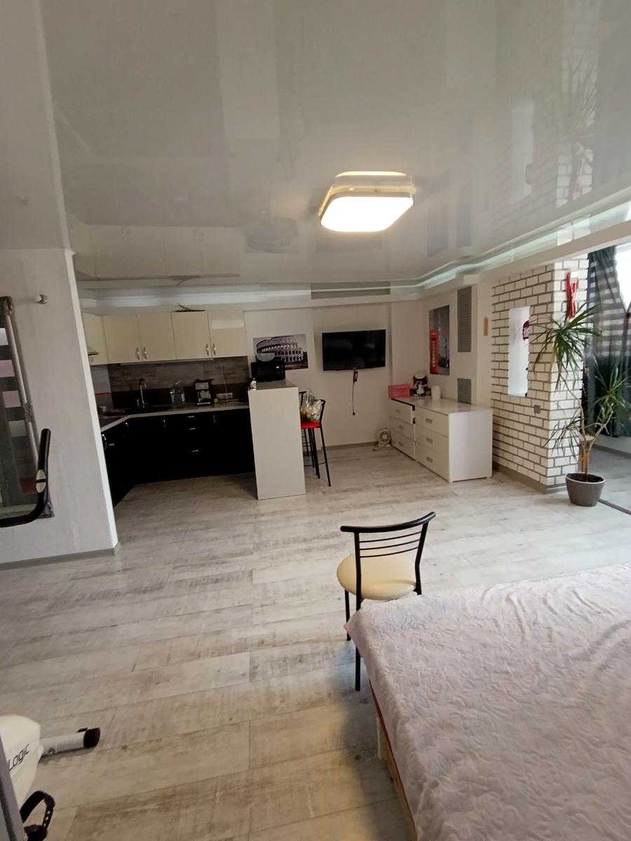 Квартира розташована в новому будинку на вулиці Семена Палія, в Пересипському районі Одеси. Простора студія площею 50 кв.м на техетажі має свіжий євроремонт. У квартирі є балкон та гардеробна, а також встановлений теплий пол у санвузлі. Будинок з бетонно-монолітною конструкцією, обладнаний даховою котельнею. З вікон відкривається вид на море та лиман. Для мешканців пропонується парковка.