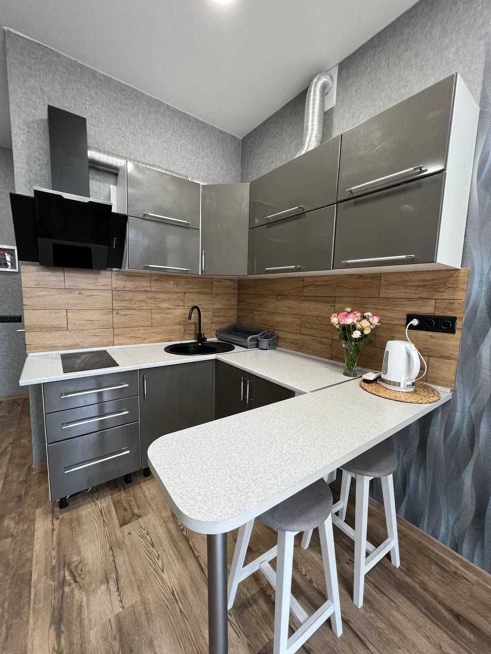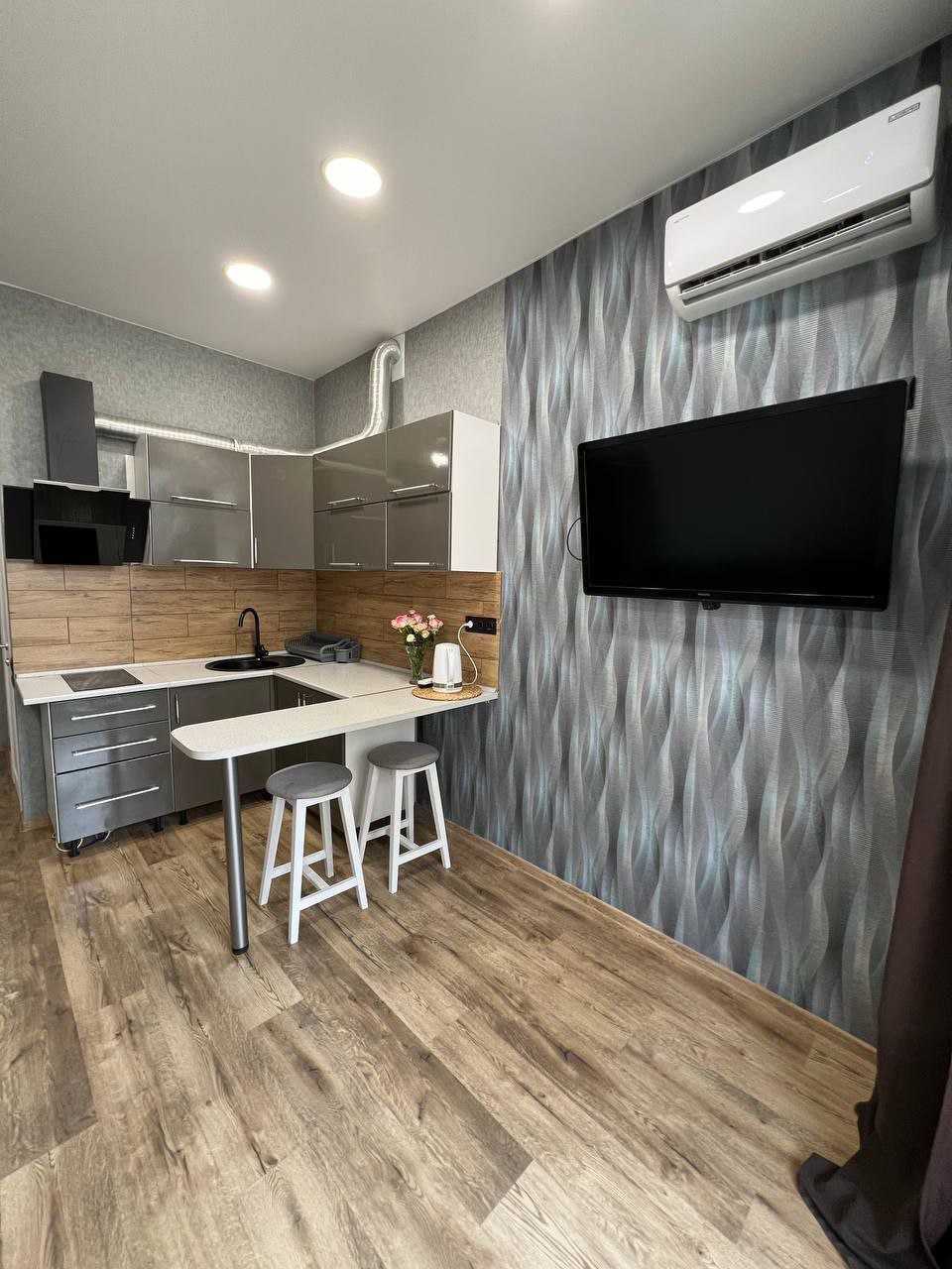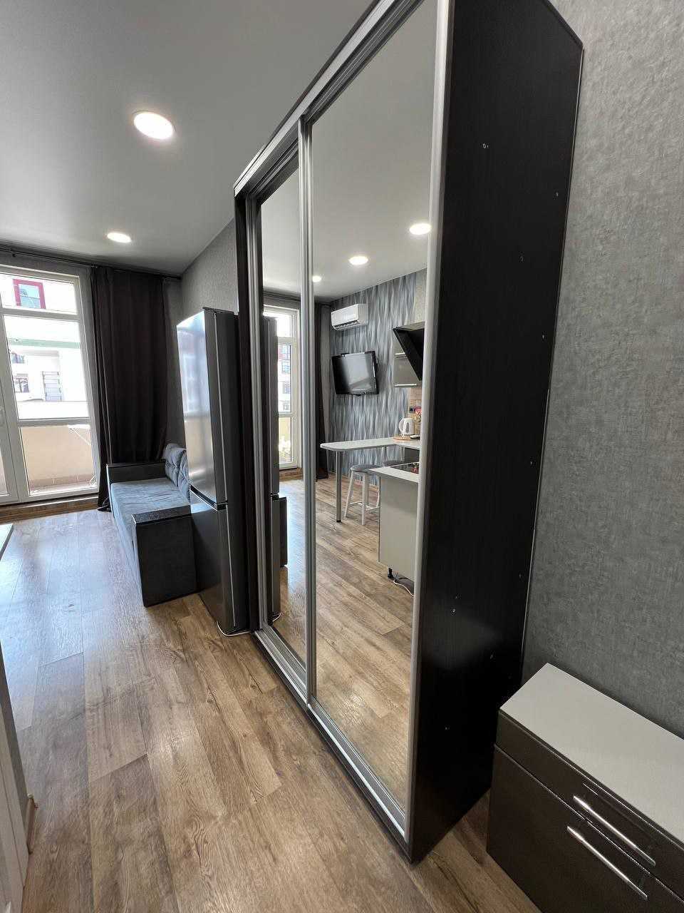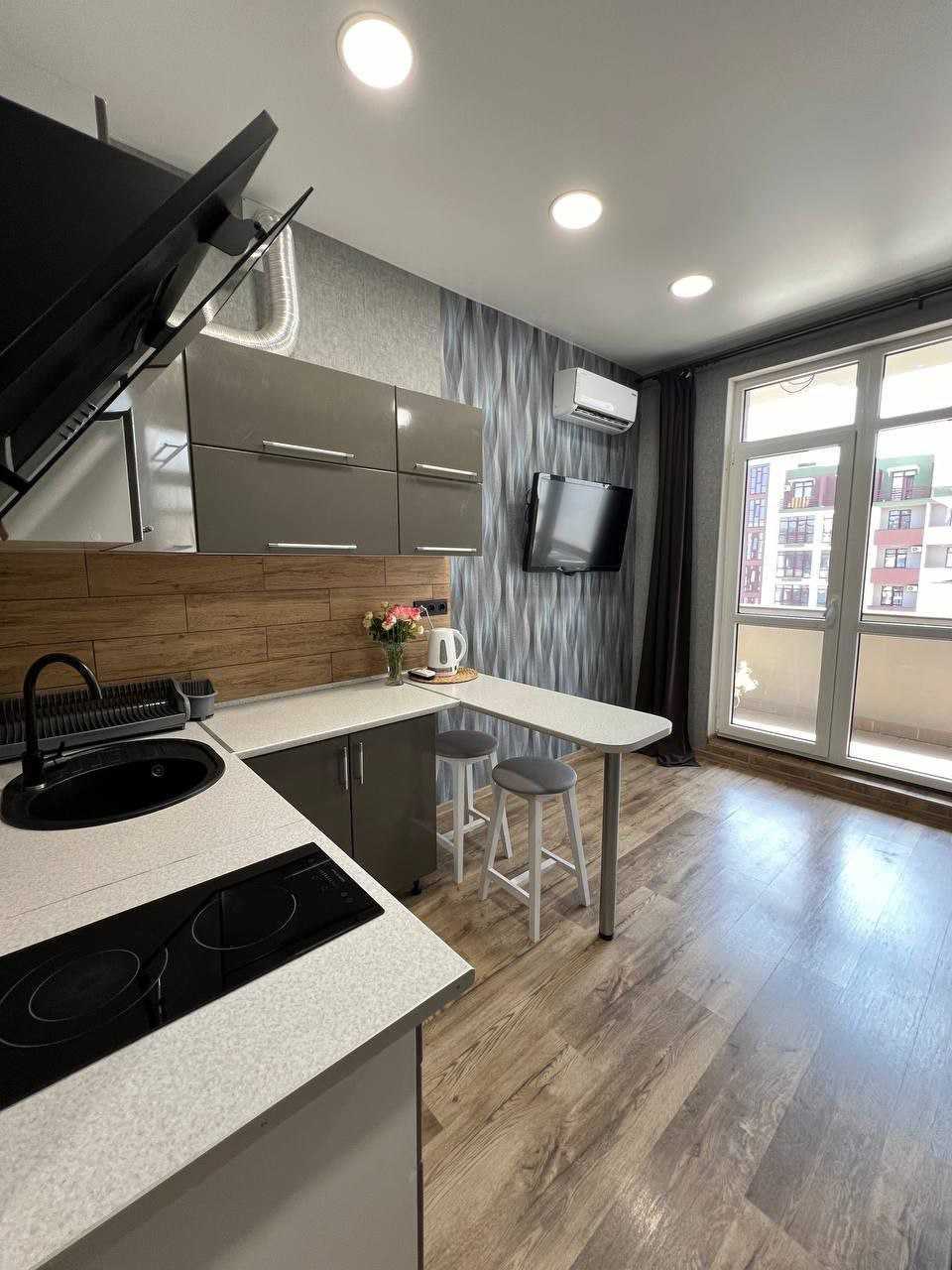 Квартира в сучасному комплексі на Бочарова/Сахарова з виконаним капітальним ремонтом. У квартирі є великий балкон, а також вмонтована меблі та техніка. Комплекс розташований на закритій охоронюваній території з відеоспостереженням. У безпосередній близькості знаходяться торгові центри, ринки, дитячі поліклініки, школи і дитячі садки. Територія озеленена, є дитячі та спортивні майданчики, а також парковки з зарядними станціями для електромобілів.