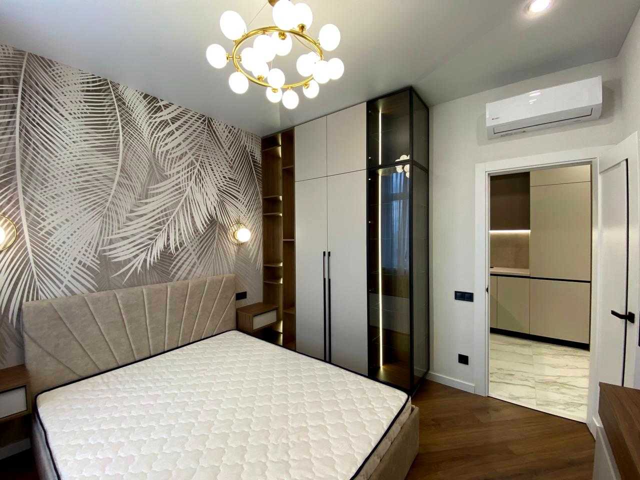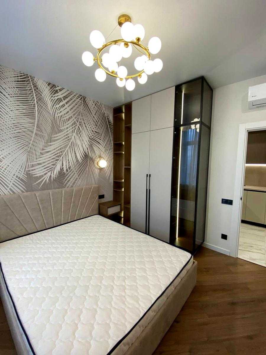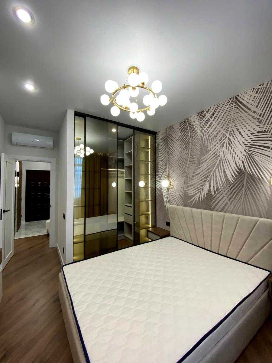 Сучасна 2-комнатна квартира у ЖК Kadorr City на вул. Краснова. Площа 52,4 м², включає спальню, дитячу кімнату, кухню-столову-гостінину з виходом на простору терасу та окрему гардеробну. Виконаний дизайнерський ремонт, нова меблі та побутова техніка. У дворі - фонтан, дитячий майданчик, зони відпочинку та підземний паркінг. Будинок розташований в центрі міста з зручною транспортною розв'язкою.