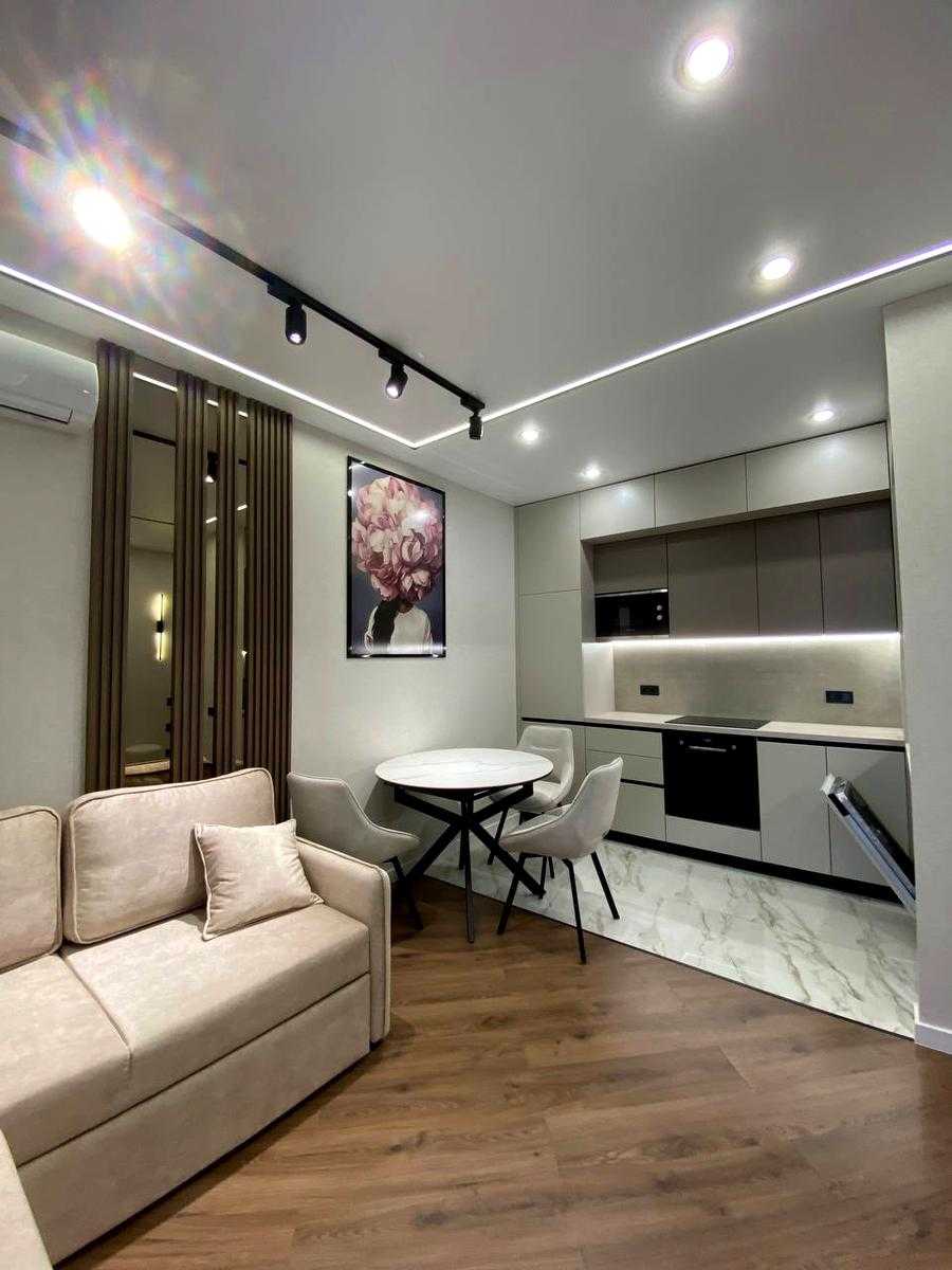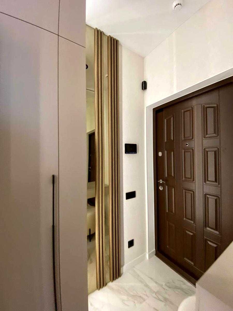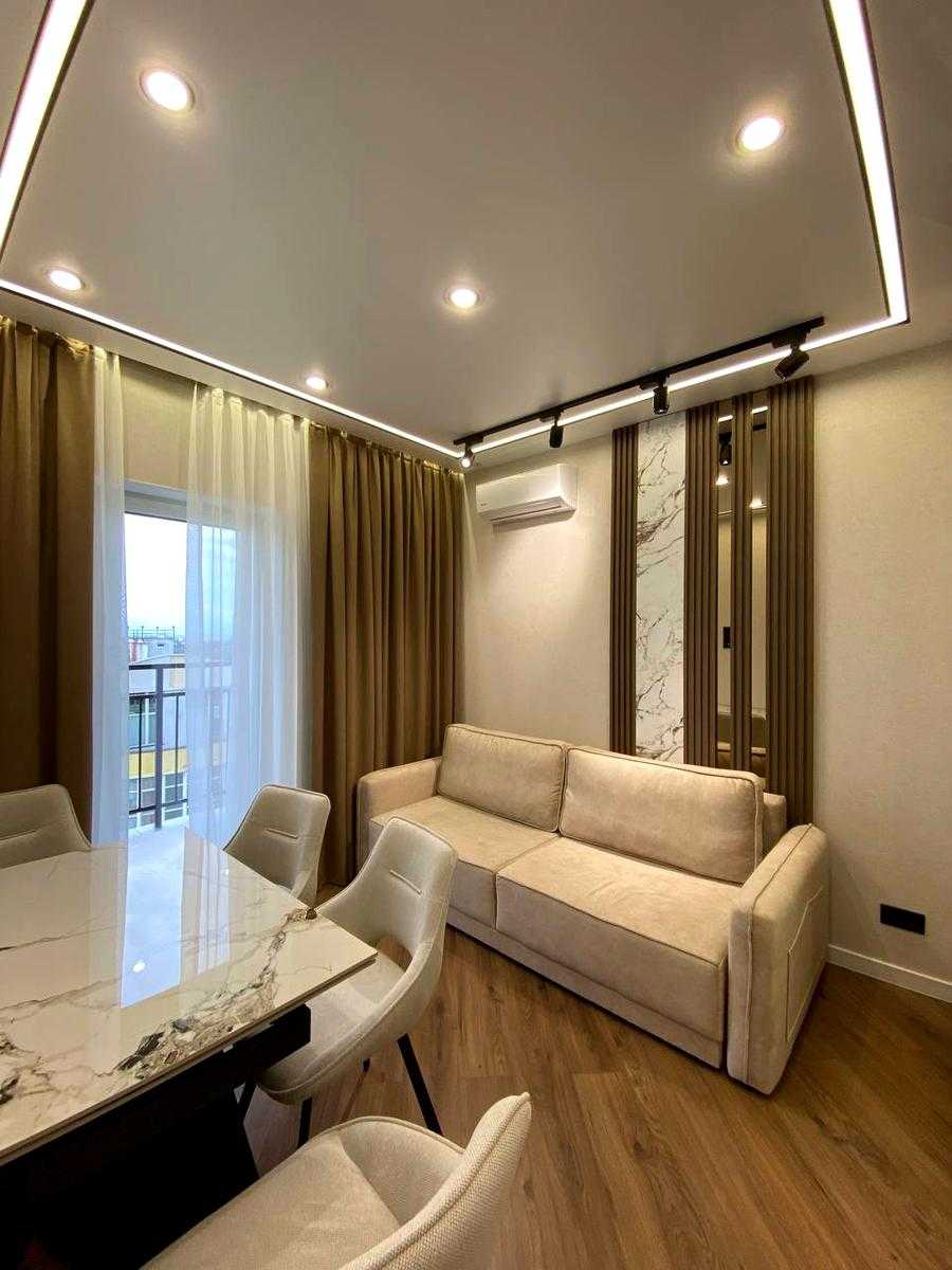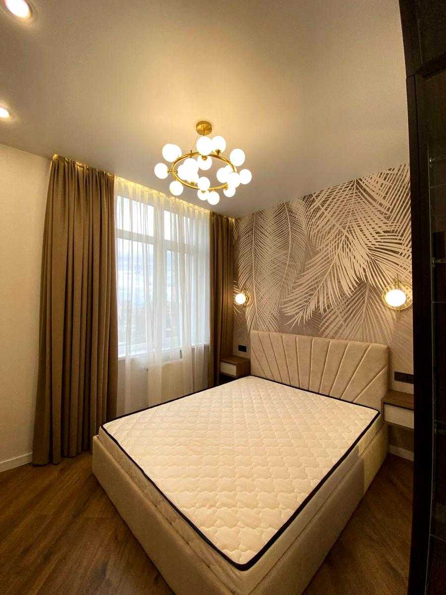 Сучасна 2-комнатна квартира у ЖК Kadorr City на вул. Краснова. Площа 52,4 м², включає спальню, дитячу кімнату, кухню-столову-гостінину з виходом на простору терасу та окрему гардеробну. Виконаний дизайнерський ремонт, нова меблі та побутова техніка. У дворі - фонтан, дитячий майданчик, зони відпочинку та підземний паркінг. Будинок розташований в центрі міста з зручною транспортною розв'язкою.
