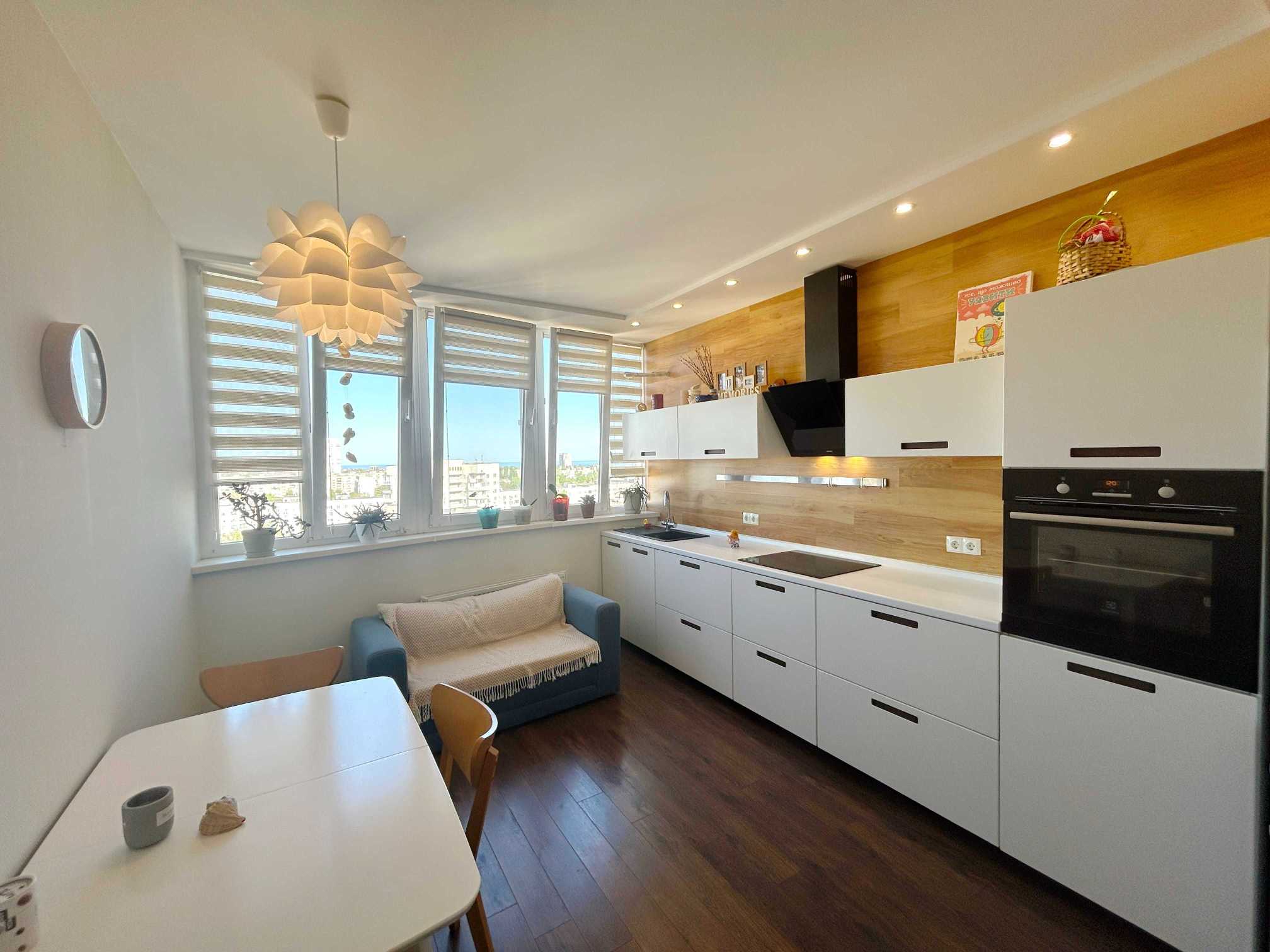 Представлена 2-кімнатна квартира в житловому комплексі Вернісаж, розташованій біля вулиці Академіка Корольова в Київському районі Одеси. Квартира знаходиться в ідеальному стані, з сучасними меблями та технікою. Простора кухня площею 15 м² обладнана посудомийною машиною та фільтром очищення води. Роздільні кімнати, роздільний санвузол, з виходом на засклену лоджію. Встановлені сучасні шафи-купе, що забезпечують комфортне і практичне використання простору. В квартирах великі вікна, завдяки чому приміщення є світлим і затишним. Вигляд на море та закрита охоронювана територія з дитячими і спортивними майданчиками роблять цей район ідеальним для сімейного життя.